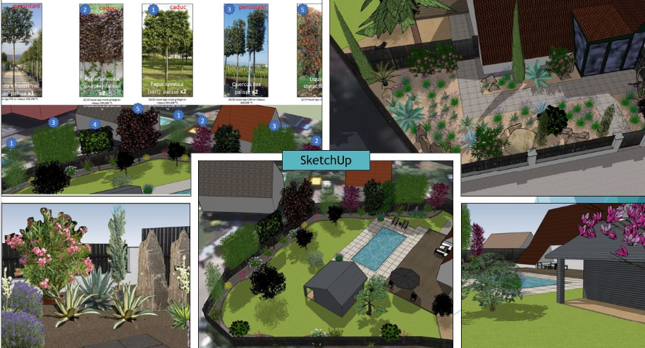 - Réalisations effectuées pour mes clients ou entreprises de paysagistes, en tant qu’infographiste / bureau d’études :